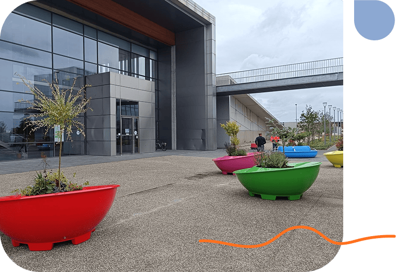 Pour répondre à ces enjeux, nous avons conçu FLOT, un modèle de jardinière esthétique et fonctionnelle, équipée d’un système d’irrigation autonome.